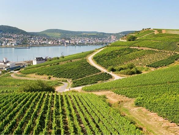 The Rhine and Moselle Valleys are responsible for much of Germany’s wine production, including both white and red varietals. Crisp Riesling and rich Pinot Noir characterize the region’s viticultural offerings, with historic vines growing on the steep slopes that rise from the iconic Rhine River.